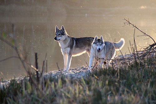 D'autres comparent le chien-loup au husky. Voici donc une photo d'un chien-loup tchécoslovaque et d'un siberian husky.