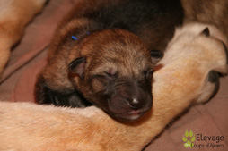 Sachez que ce sera la seule portée en 2015 pour notre élevage puisque premièrement j'attends un quatrième enfant et je souhaite accorder plus de temps à ma meute humaine et deuxièmement le gouvernement qui souhaite anéantir l'élevage familial a décidé dernièrement d'un quota maximum de reproduction de chiens de race chez les éleveurs particuliers avec une seule portée annuelle quelquesoit le nombre de chiots à la naissance.