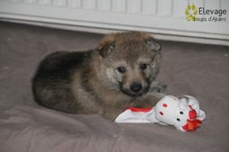 Ses chiots seront disponibles au début du printemps et c'est la meilleure période pour accueillir un chiot chien-loup tchécoslovaque car les chiots nécessitent énormément de socialisation, sociabilisation et il va de soit que nous sortons plus aux beaux jours, que nos activités extérieures sont plus sitmulantes qu'en plein hiver.