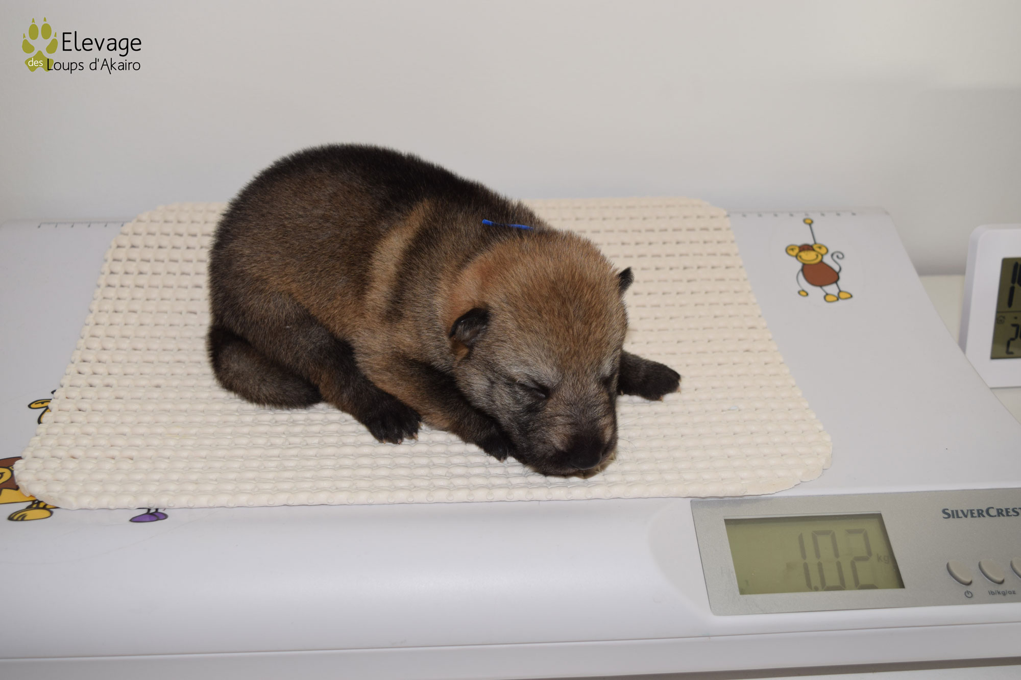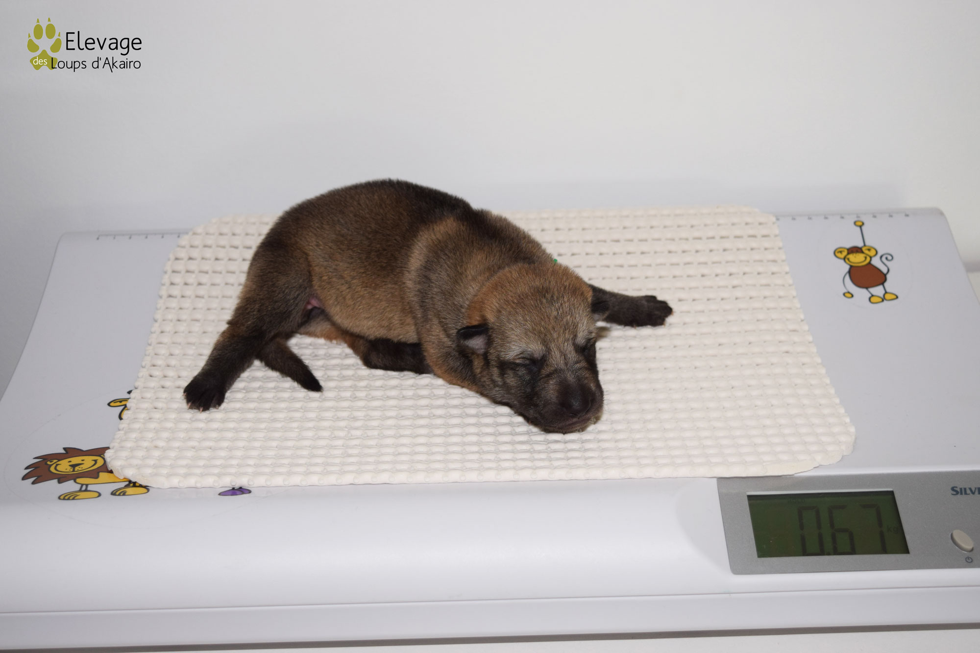 Les chiots sont pesés tous les jours de la naissance à 1 mois puis tous les 2 jours. Grâce à leur collier de couleur, nous pouvons ainsi suivre une évolution précise de leur poids et déceler d'éventuel problème.