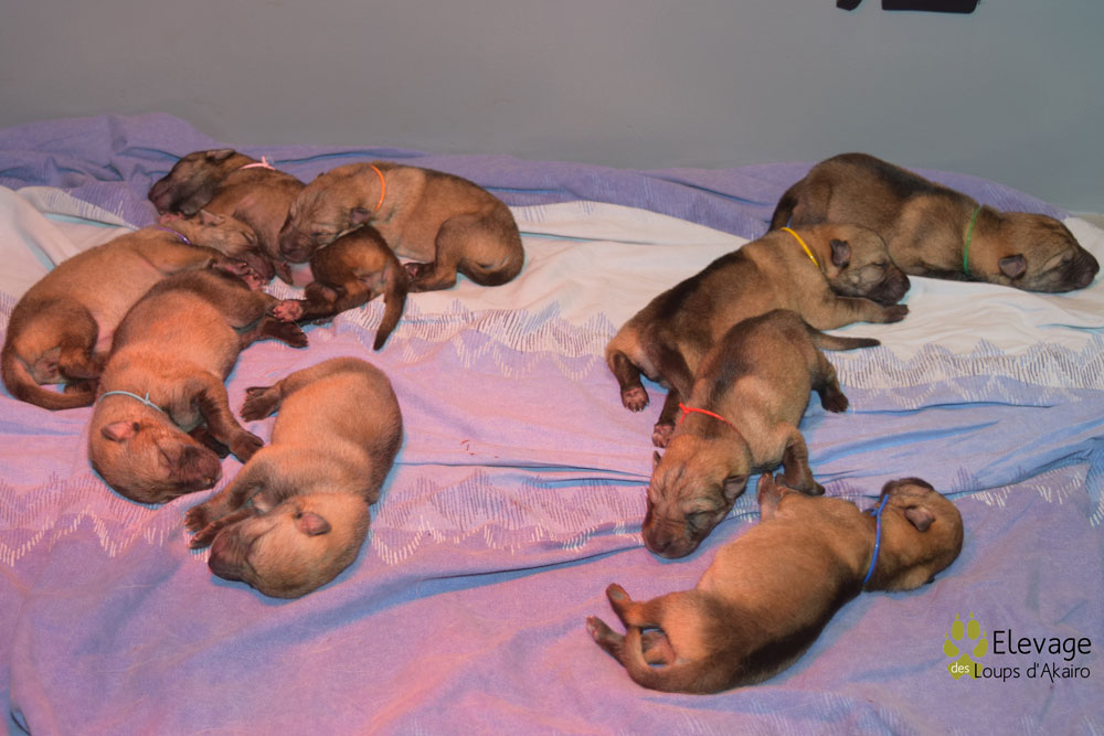 Il y a 9 chiots : 2 mâles et 7 femelles.