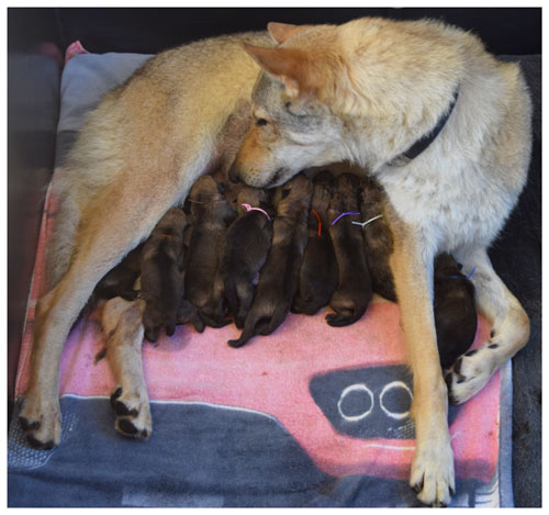 11 merveilles dont 5 mâles et 6 femelles sont nés de son mariage avec notre Izaak des Loups d'Akairo.