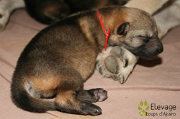 Les chiots sont pesés tous les jours jusqu'à 1 mois afin de vérifier leur croissance et de déceler d'éventuel soucis de santé puis tous les 2 jours jusqu'à 6 semaines et enfin tous les 3 jours.