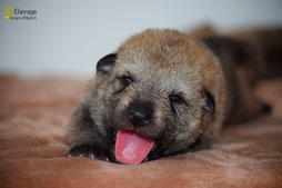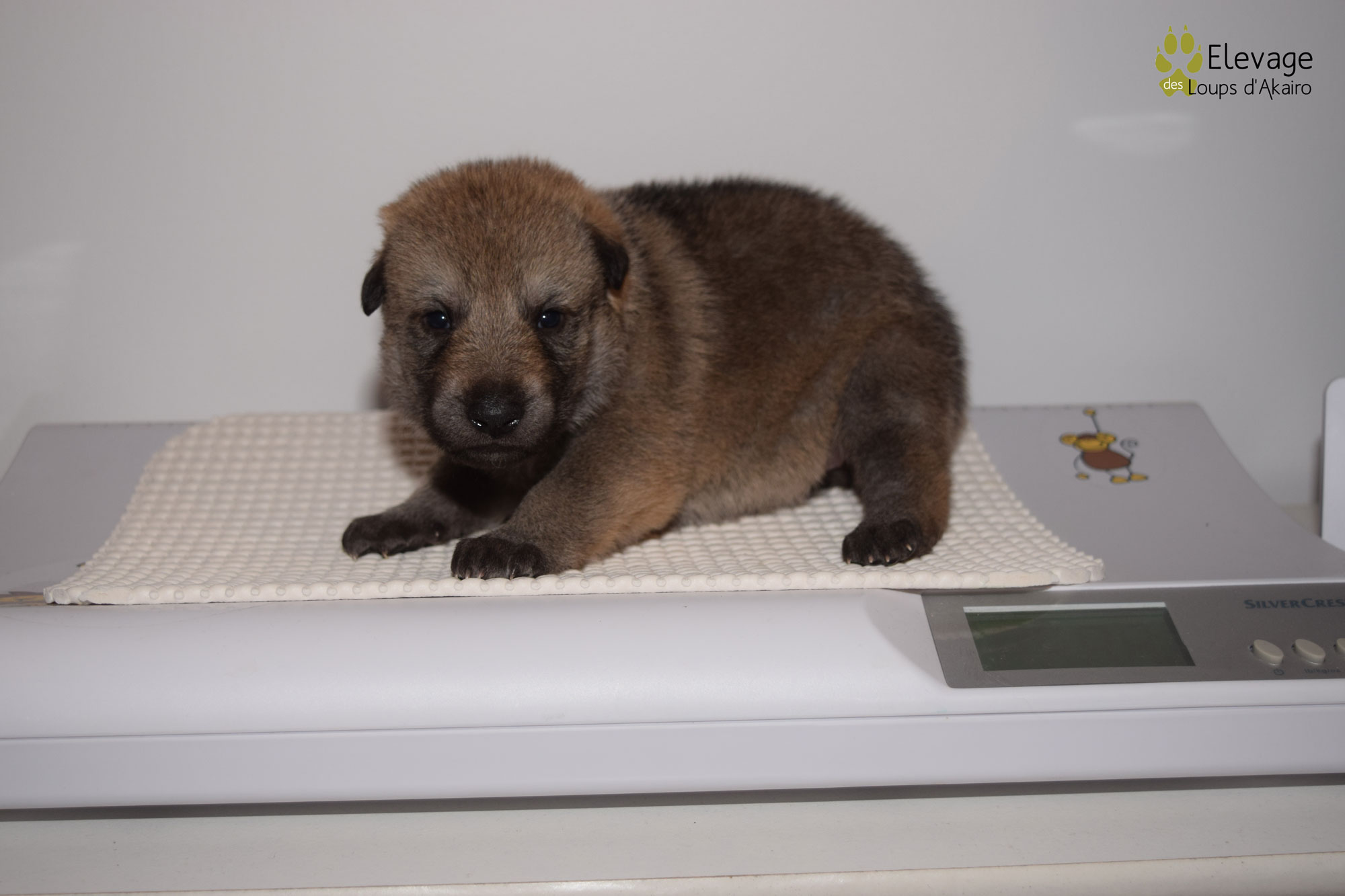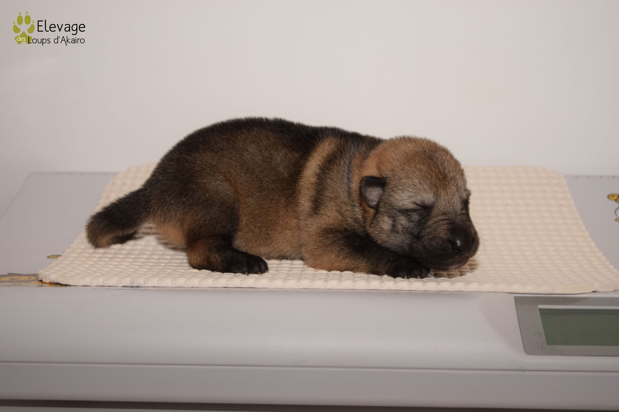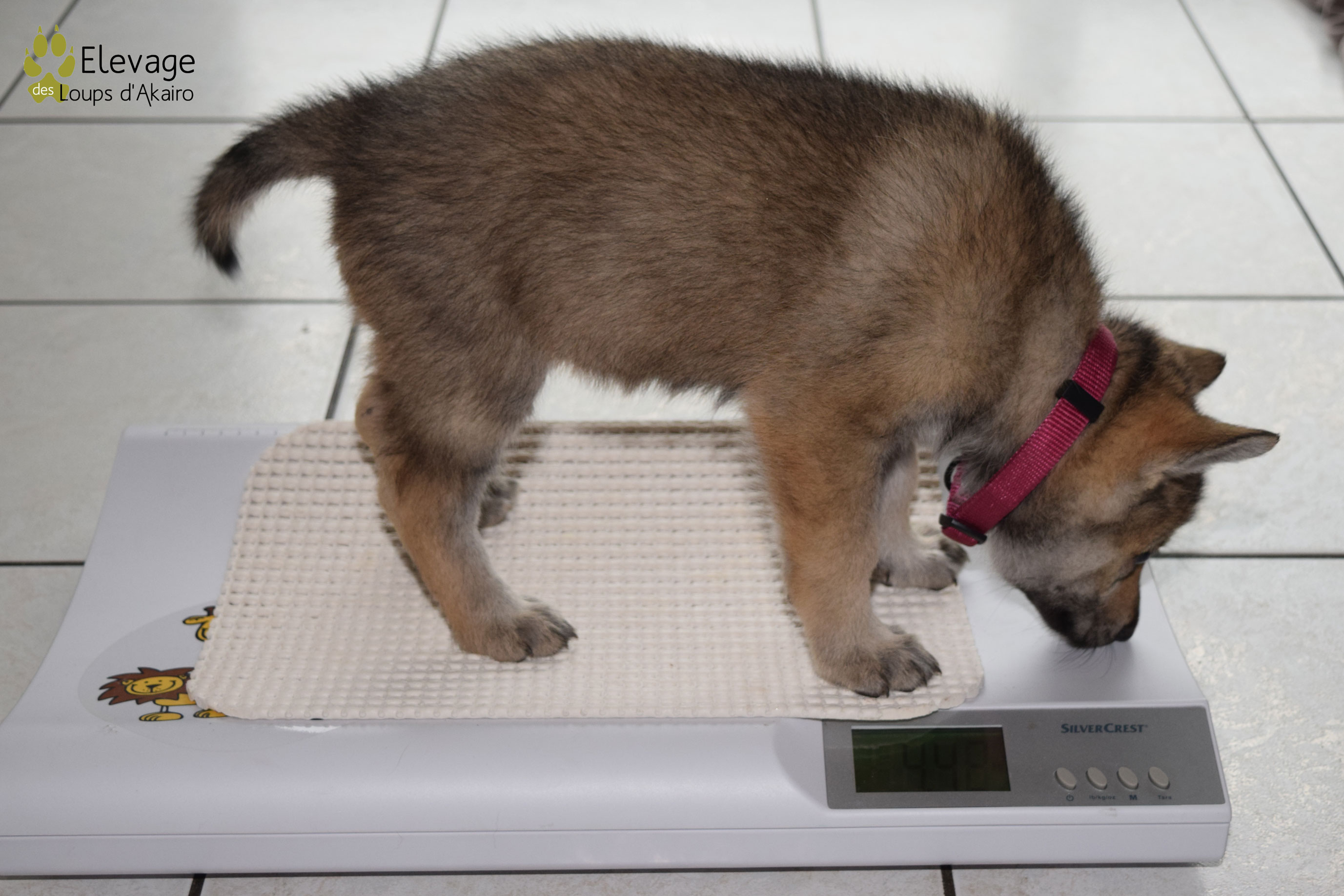 Les chiots sont pesés tous les jours de la naissance à 1 mois puis tous les 2 jours. Grâce à leur collier de couleur, nous pouvons ainsi suivre une évolution précise de leur poids et déceler d'éventuel problème.