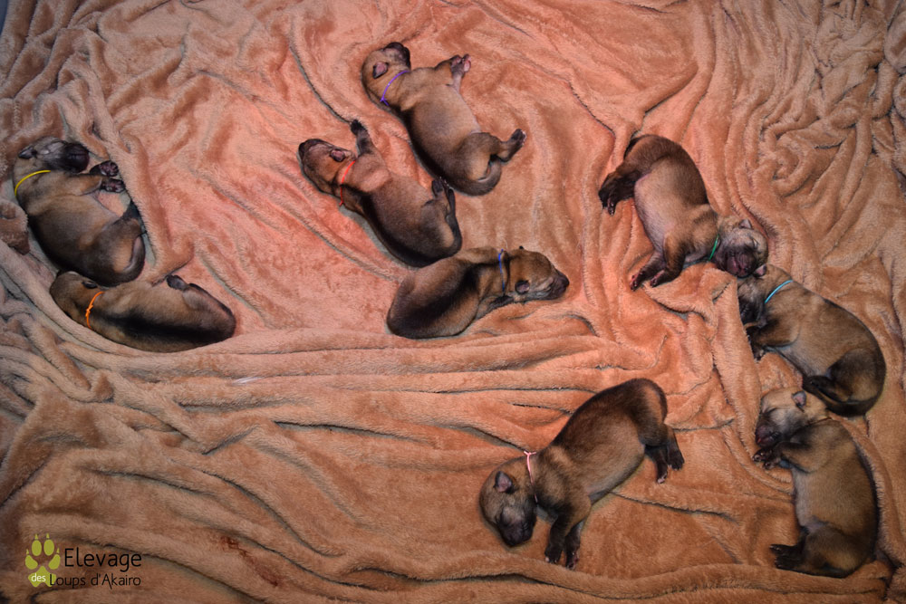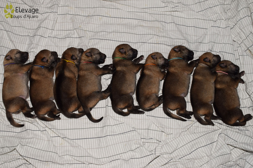 Il y a 9 chiots : 2 mâles et 7 femelles.