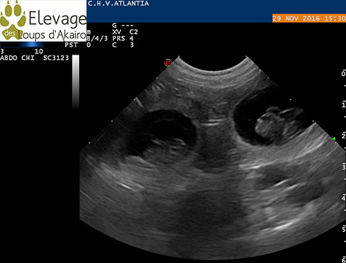 L'échographie de gestation pratiquée le 29 novembre a confirmé que la belle attendais des chiots pour début janvier, disponibles au printemps.